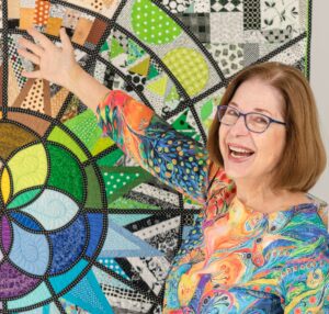 Anne Marcellis of Sam Quilt Designs is a national award-winning quilter whose creative journey began in 2001—after years of sewing clothing for herself and her children. What started with a first wall quilt (and mitered borders held together with super glue!) quickly ignited a passion that never faded. Over the years, Anne has grown into a respected designer, teacher, judge, and speaker, sharing her vibrant style and love of color with quilters across numerous states. Her work has earned multiple People’s Choice and Best of Show awards, and two of her quilts were featured in the American Quilter’s Society Quilt…